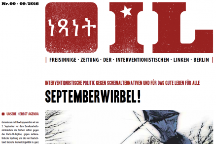 Die Dinge geraten nicht nur in Berlin, nicht nur in Deutschland in Bewegung. Das bedeutet Chancen, das bedeutet Gefahr. Unsere vielfältige Praxis orientiert sich deshalb gerade jetzt sowohl auf den Kampf um linke Alternativen als auch gegen reaktionäre Antworten. Deshalb freuen wir uns, auch nach September mit euch gemeinsam für eine bessere Welt zu streiten.