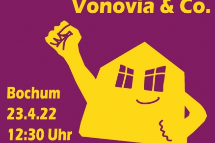Am 23.04.2022 demonstrieren wir in Bochum gegen die Vonovia-Aktionär*innenversammlung. Wir rufen auf: Kommt mit uns in den Enteignungsblock, für eine Stadt für alle statt für Vonovia.
