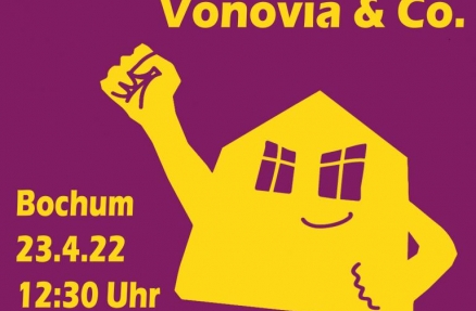 Am 23.04.2022 demonstrieren wir in Bochum gegen die Vonovia-Aktionär*innenversammlung. Wir rufen auf: Kommt mit uns in den Enteignungsblock, für eine Stadt für alle statt für Vonovia.
